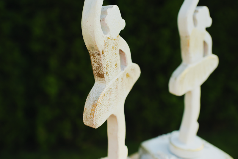 Wykonana z drewna, ręcznie pomalowana na biało, została dodatkowo pozłocona.