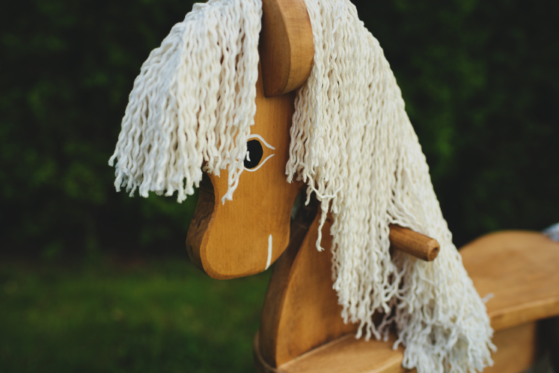 Jego najbardziej charakterystycznym elementem jest gęsta, bujna grzywa oraz długi ogon, zrobione z grubej, miękkiej włóczki w kremowym kolorze.