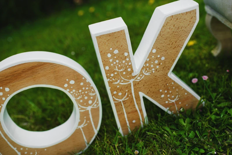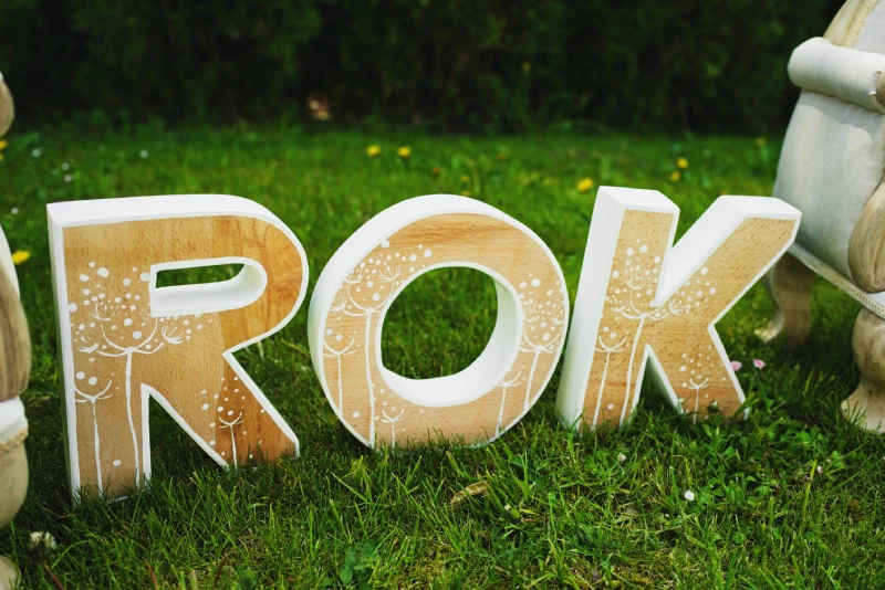 Litery są stabilne i solidne, co pozwala na ich swobodne ustawianie w dowolnej konfiguracji, zarówno w plenerze (jak na zdjęciu na tle zielonej trawy), jak i w studio. Ich rozmiar jest optymalny, by stanowiły wyraźny, ale nie dominujący element kompozycji fotograficznej.