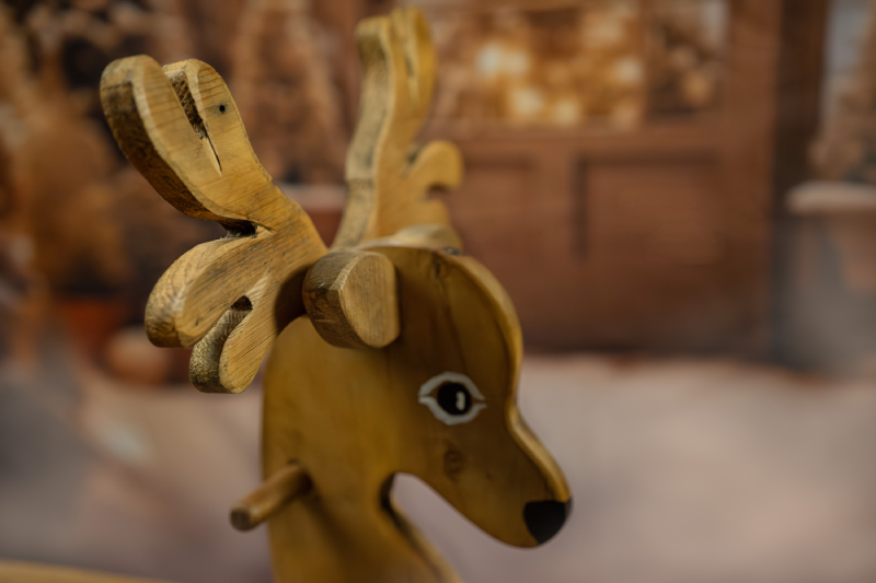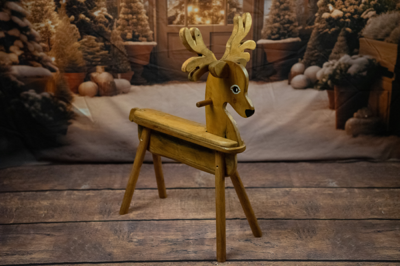 Ten drewniany renifer to niezastąpiony rekwizyt dla fotografów, którzy chcą stworzyć magiczną, świąteczną atmosferę na swoich zdjęciach. Może służyć jako uroczy element dekoracyjny, a także jako bezpieczne i stabilne miejsce dla maluszków.